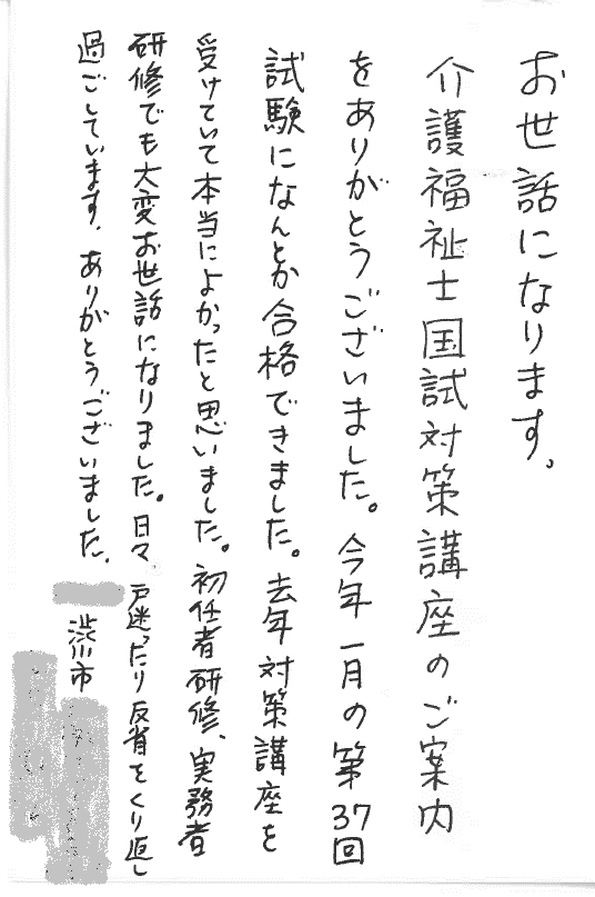 2024年「国家試験対策講座」受講生様より素敵なはがきをいただきました